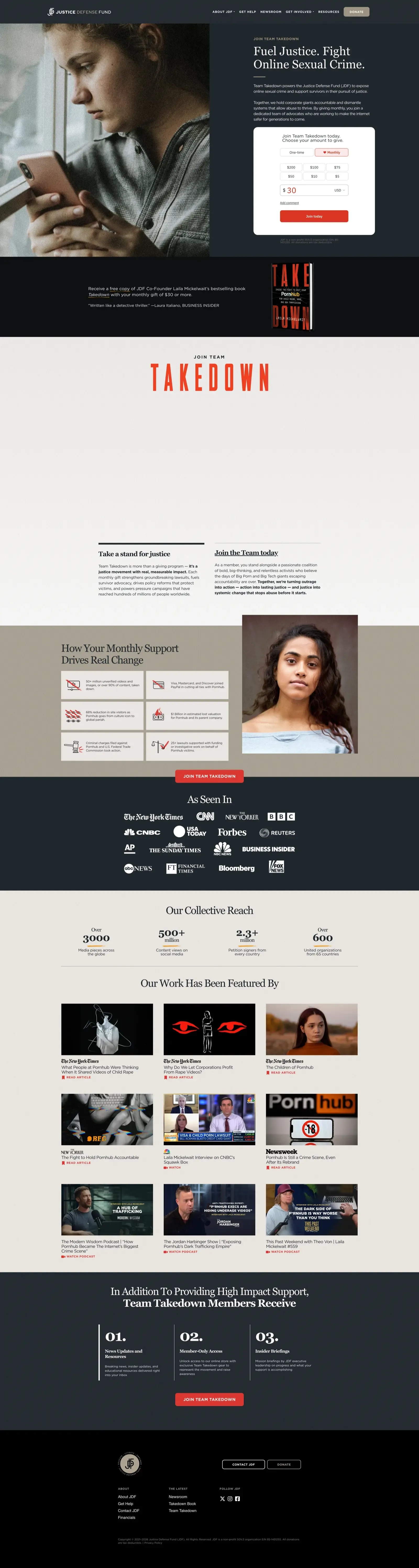 Justice Defense Fund (JDF) needed a website that would reflect the seriousness of their work and give people clear ways to get involved. We partnered with their team to design and develop a site that serves survivors, informs the public, and supports legal and advocacy efforts.